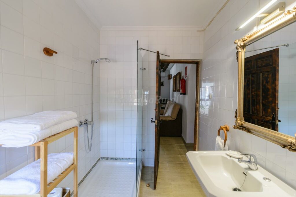En la planta baja accedemos directamente al salón, salón con chimenea, comedor y gran cocina con barra y techo a doble altura con vigas de madera vistas. En esta planta también hay un baño completo con plato de ducha.